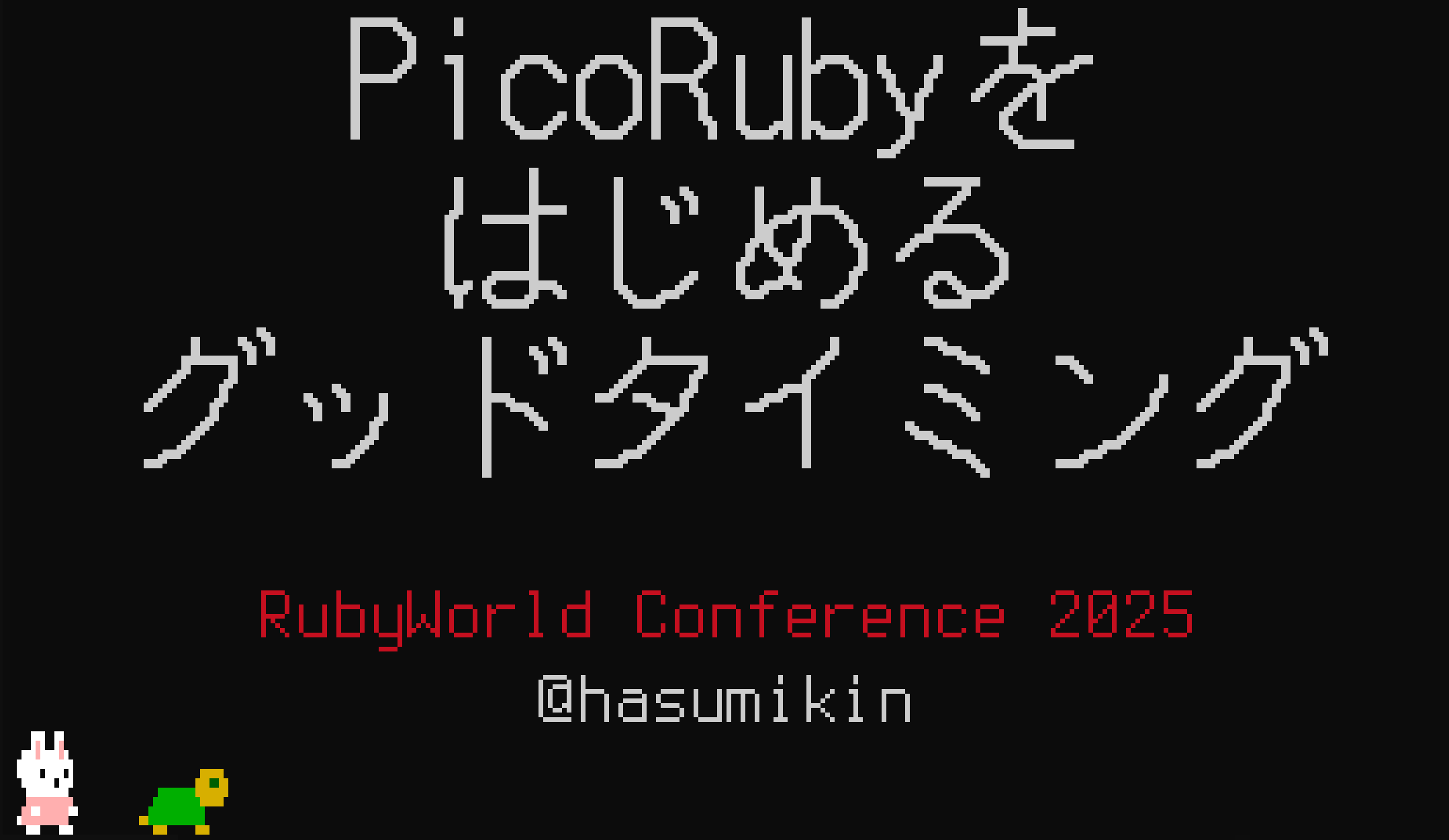 先日のRubyWorld Conference 2025での登壇でも、ラズパイピコ2のMicroRuby版R2P2でRapiccoをつかってプレゼンしました。 控え室で@koicさんにスライドをちらっと見せたところ、「英語をちょいちょい入れてて偉い」(意訳)と褒められました。