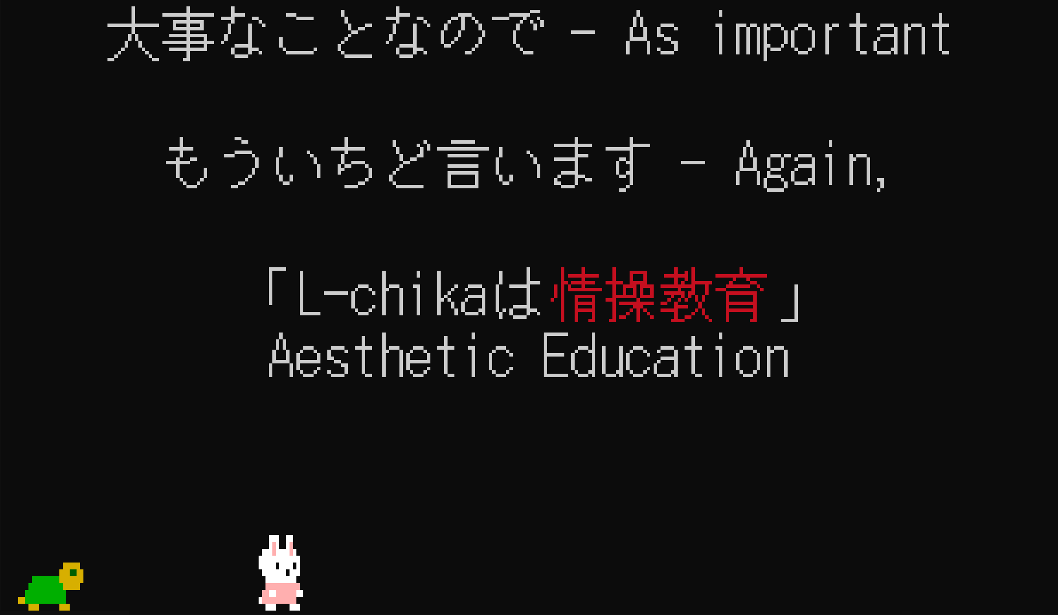 その後、FULL BLOCKに加えてUPPER HALF BLOCK:"\xE2\x96\x80"(▀)とLOWER HALF BLOCK:"\xE2\x96\x84"(▄)もつかえば端末のフォントサイズを2倍にできることに気づきました。